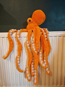 This beauty of an Anchor Octopus is made from chenille yarn and the head is stuffed soft and cuddly. This can be made in a different colour upon request.