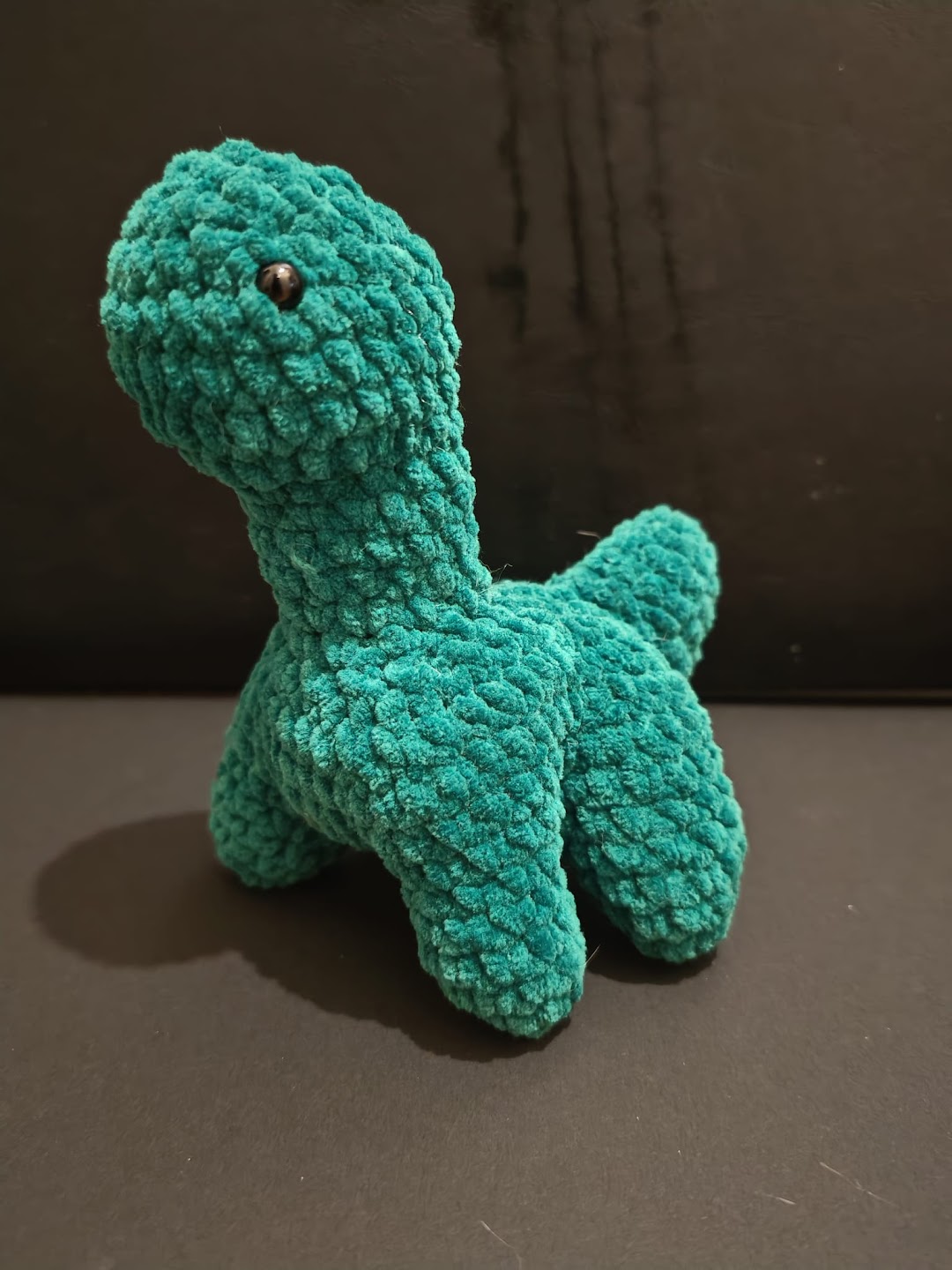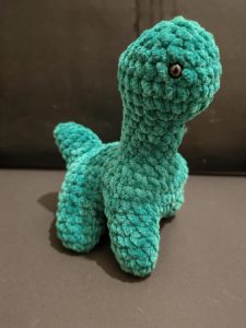 Made with chenille yarn and stuffed to be soft and cuddly.